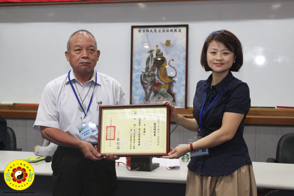 理事長頒予吳傳灯常務理事第三屆常務理事當選證明書