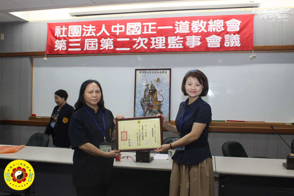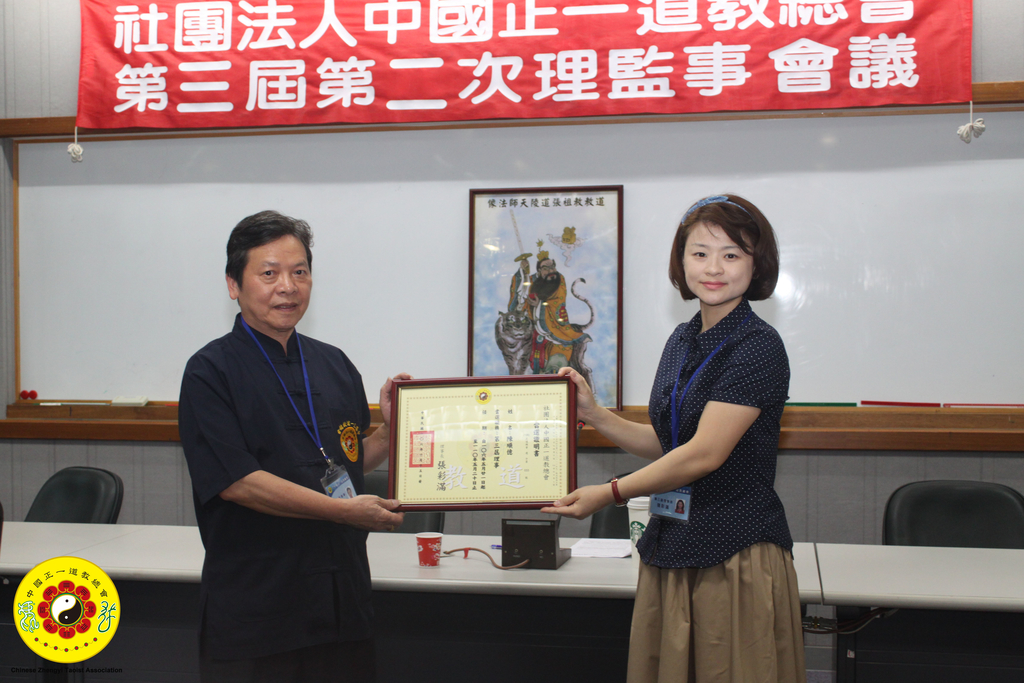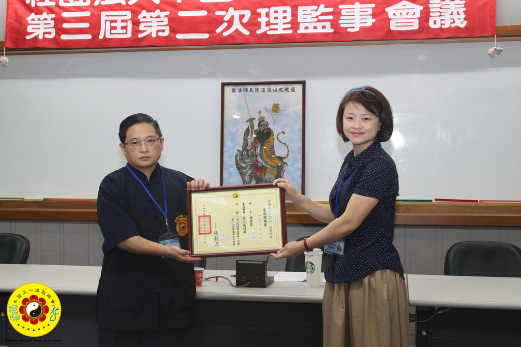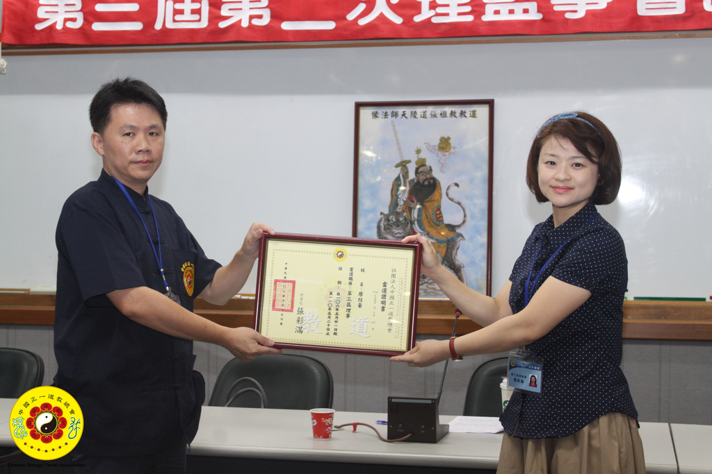 理事長頒予楊榮雲理事第三屆理事當選證明書