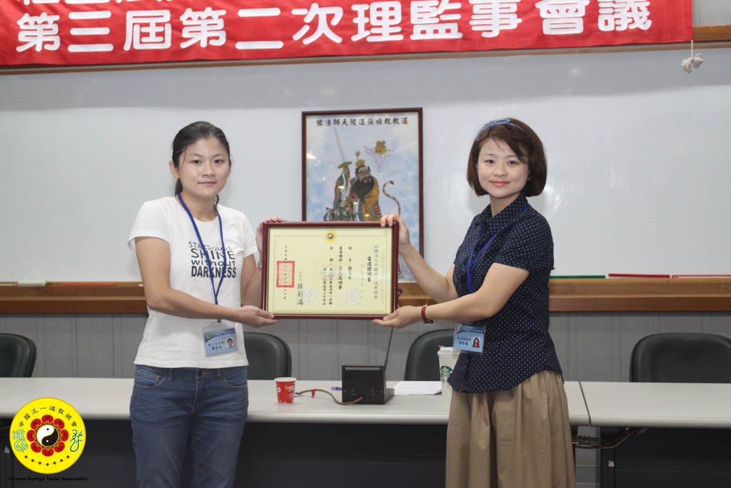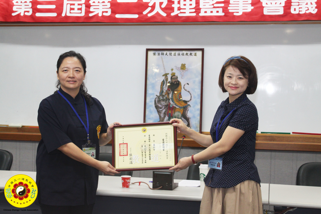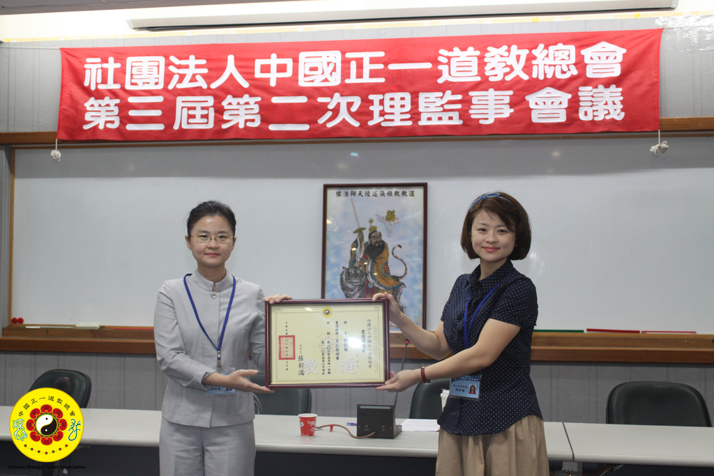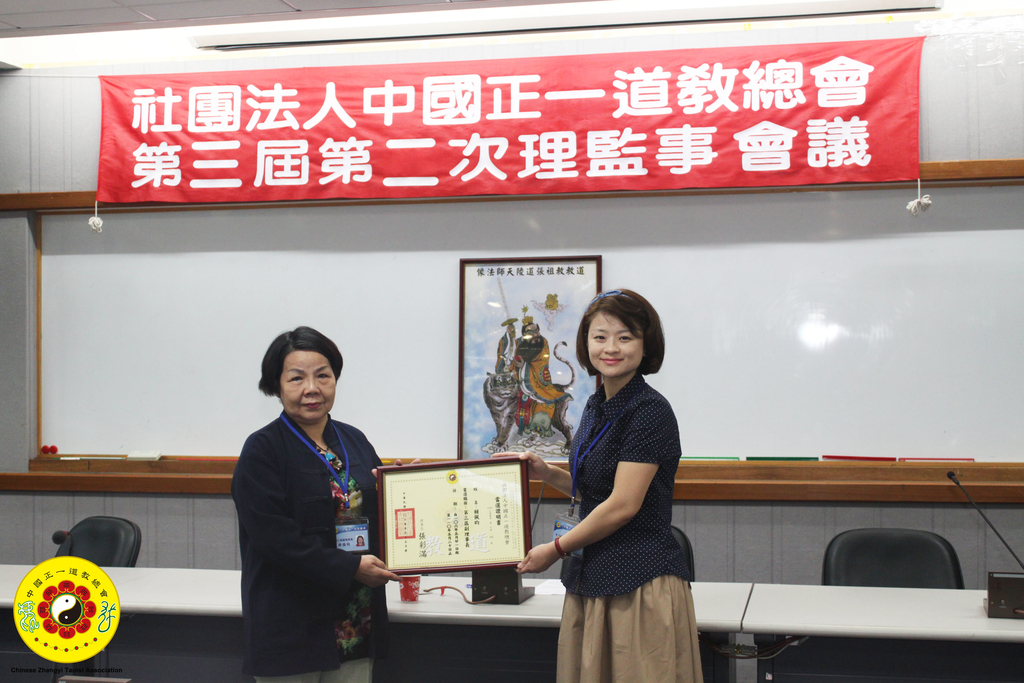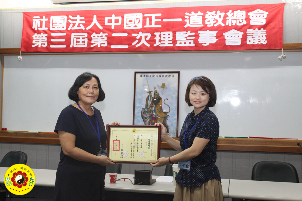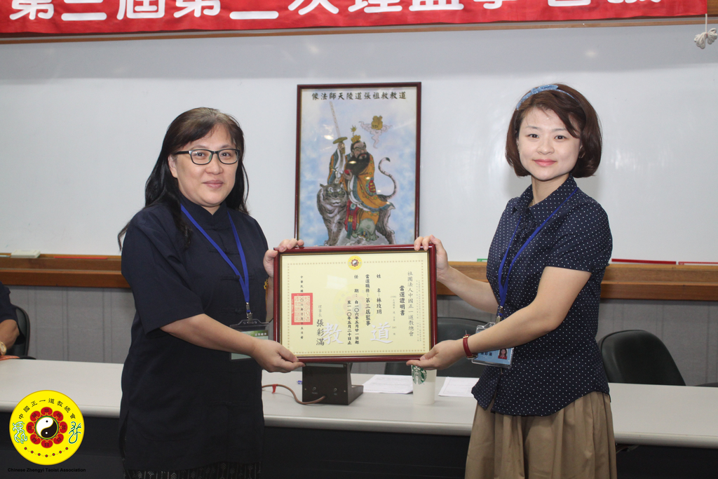 理事長頒予張懿鳳理事第三屆理事當選證明書