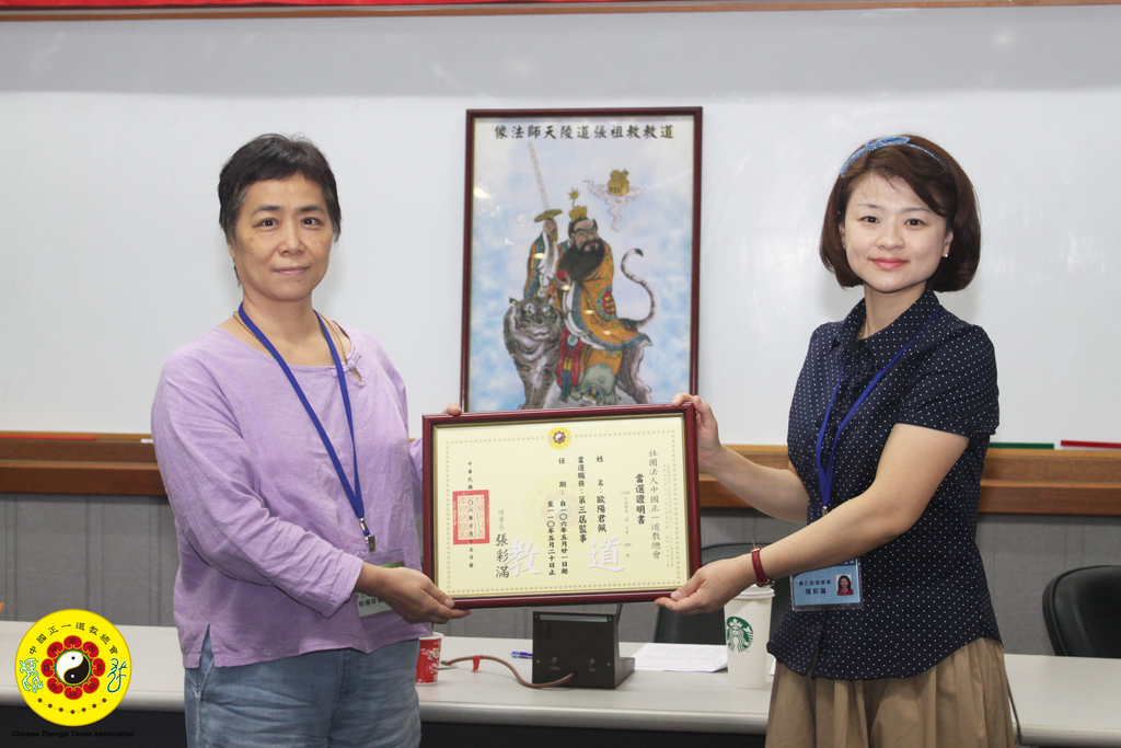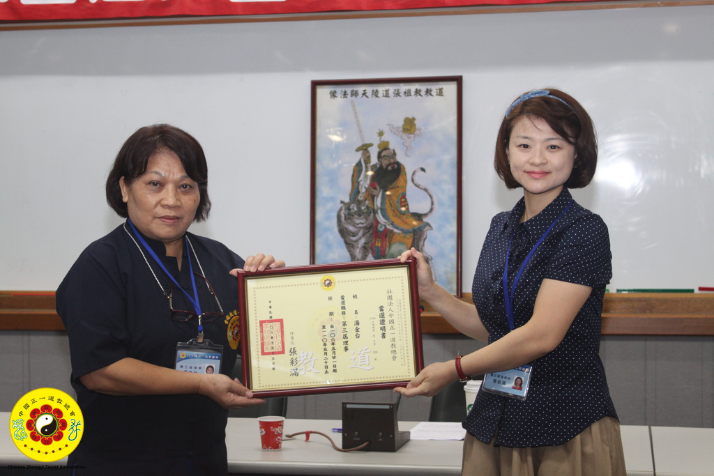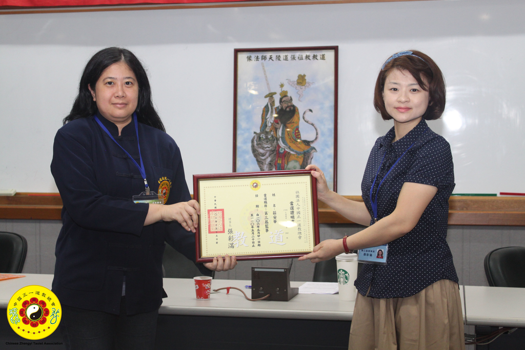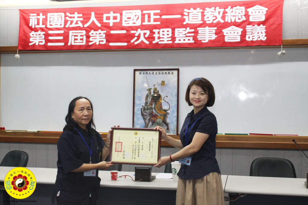 理事長頒予蔡玉雲常務理事第三屆常務理事當選證明書