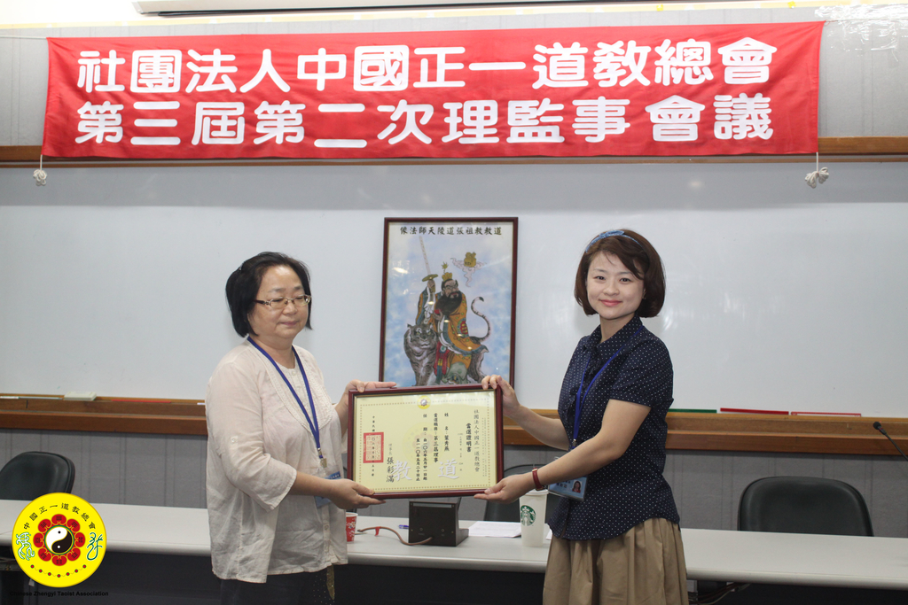 理事長頒予葉秀燕理事第三屆理事當選證明書